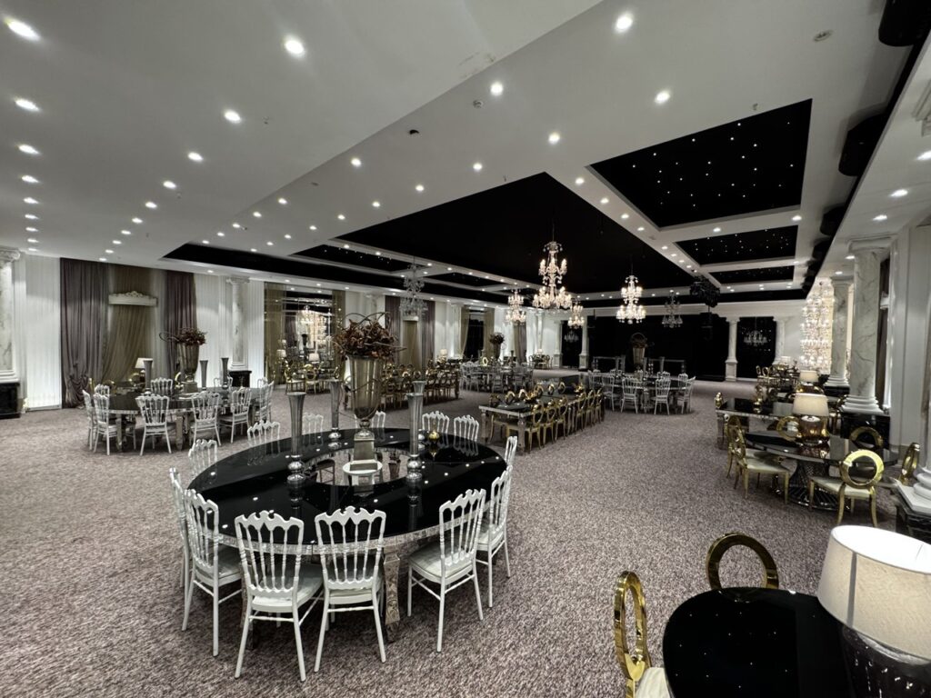 بزرگترین سالن مجموعه با ظرفیت 205 نفر، تم مشکی و طلایی و طراحی لوکس. ایدهآل برای مراسمهایی که میخواهید شکوه و جلال در هر جزئیات دیده شود.